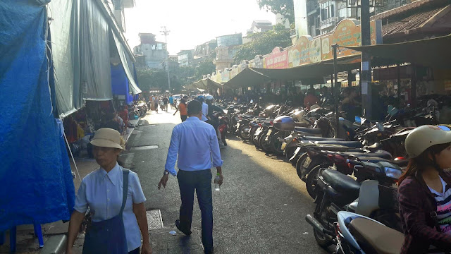 So today I pick up the bike. Yesterday I had planned to go to the B52 Museum but my motorbike taxi driver was not about (I like to patronise only one bloke, I find you get better service that way and the price goes down if he thinks you are loyal). So I walked over to the big market at the end of the old quarter. It took some searching but I finally found a stall selling ponchos, raincoats for wearing on motorbikes. After some polite bargaining I came away with a suitable model for less than $5:00.